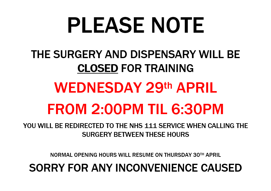 THE SURGERY AND DISPENSARY WILL BE CLOSED FOR TRAINING